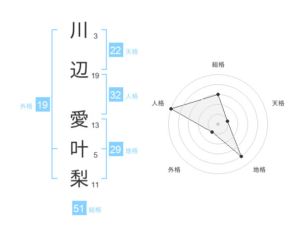 川辺 愛叶梨さんの総格は51画の3点!