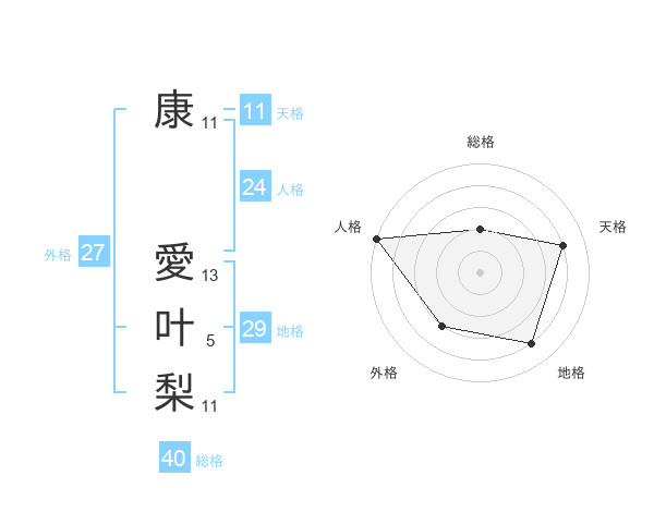 康 愛叶梨さんの天格は11画の4点!