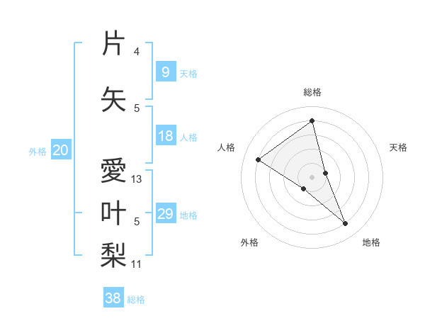 片矢 愛叶梨さんの総格は38画の4点!