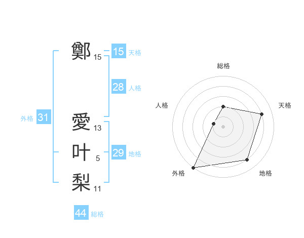 鄭 愛叶梨さんの外格は31画の5点!