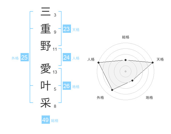 三重野 愛叶采さんを姓名の画数から五運を鑑定