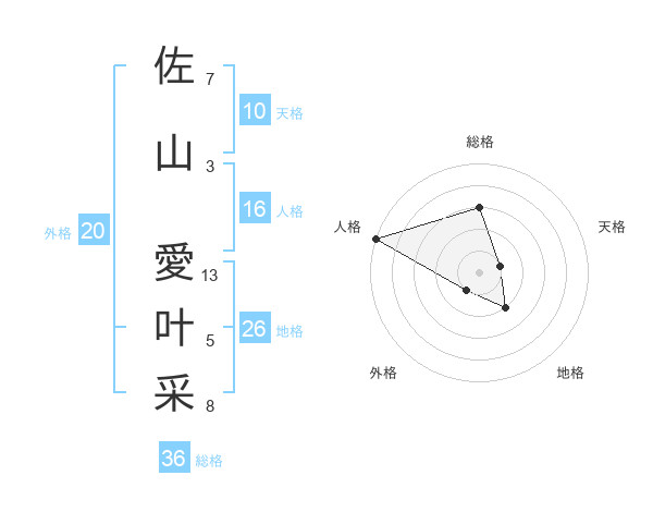 佐山 愛叶采さんを姓名の画数から五運を鑑定