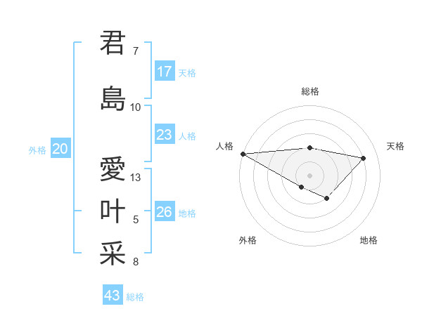 君島 愛叶采さんを姓名の画数から五運を鑑定