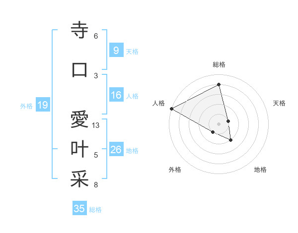 寺口 愛叶采さんの総格は35画の4点!