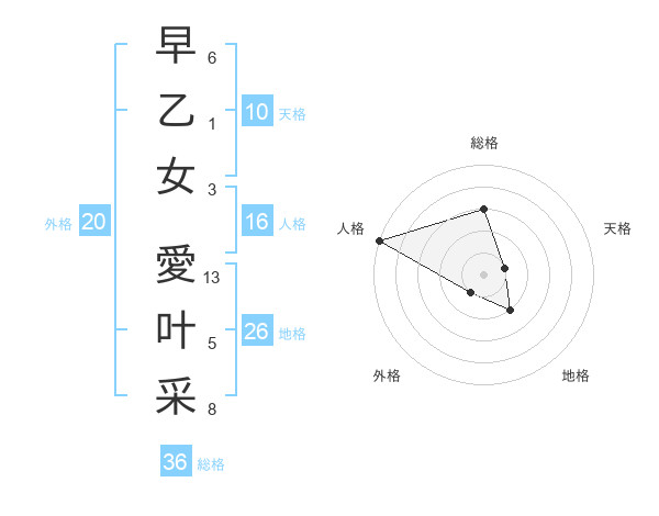 早乙女 愛叶采さんの天格は10画の1点!