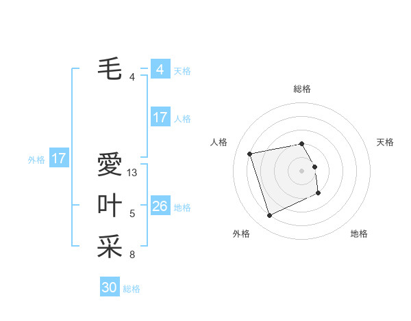 毛 愛叶采さんの総格は30画の2点!