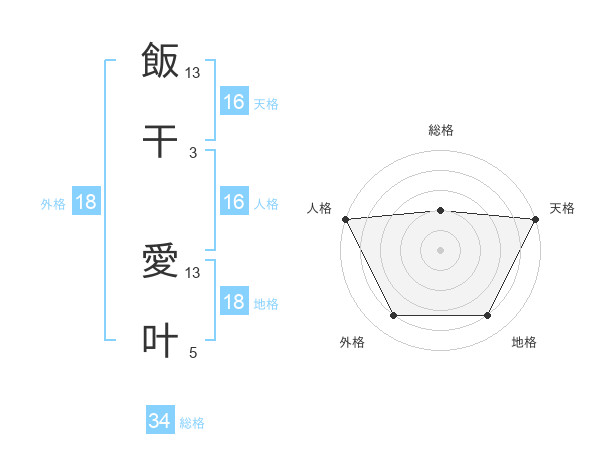 飯干 愛叶さんの天格は16画の5点!