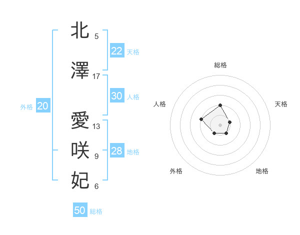 北澤 愛咲妃さんを姓名の画数から五運を鑑定