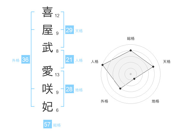 喜屋武 愛咲妃さんの天格は29画の4点!
