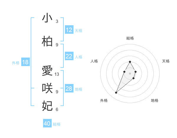 小柏 愛咲妃さんを姓名の画数から五運を鑑定