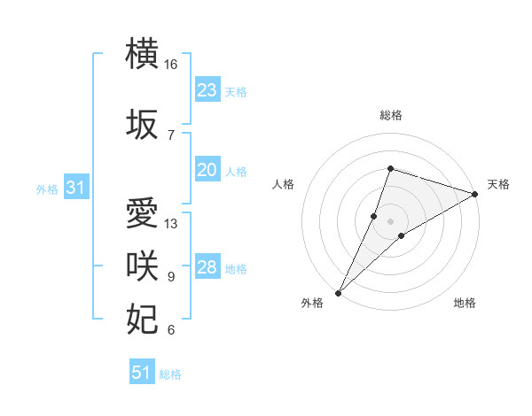横坂 愛咲妃さんを姓名の画数から五運を鑑定