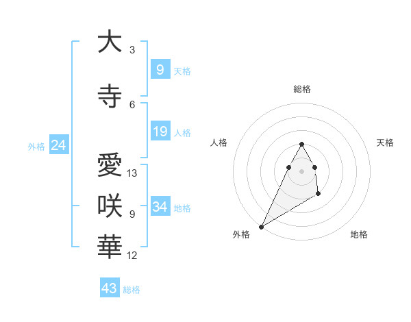 大寺 愛咲華さんの外格は24画の5点!