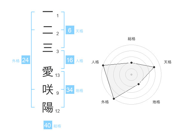 一二三 愛咲陽さんを姓名の画数から五運を鑑定