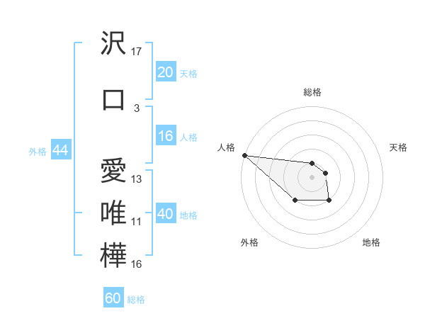 沢口 愛唯樺さんの人格は16画の5点!