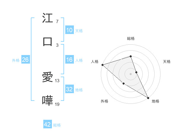 江口 愛嘩さんを姓名の画数から五運を鑑定
