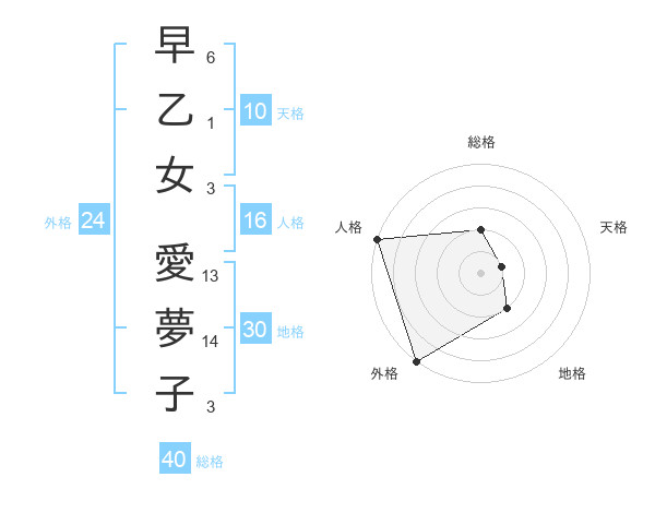 早乙女 愛夢子さんの総格は40画の2点!