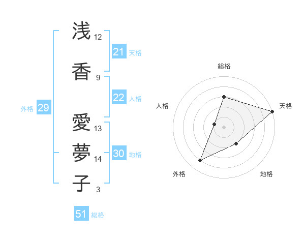 浅香 愛夢子さんを姓名の画数から五運を鑑定