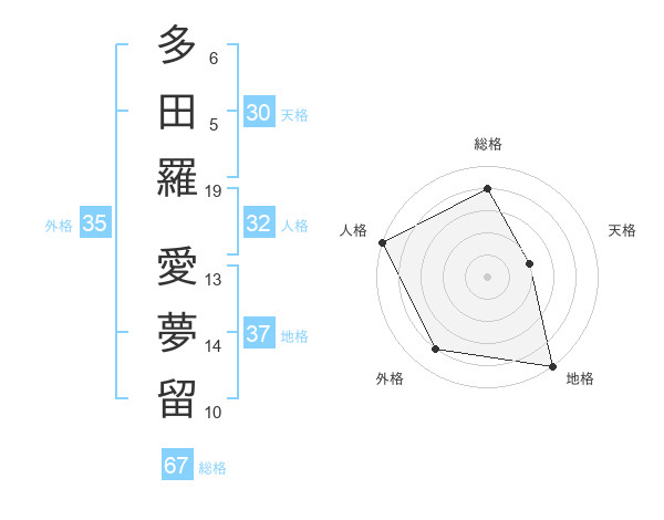 多田羅 愛夢留さんを姓名の画数から五運を鑑定
