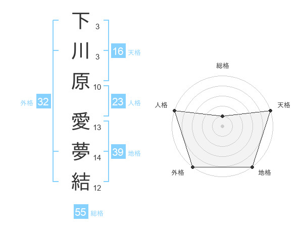 下川原 愛夢結さんを姓名の画数から五運を鑑定