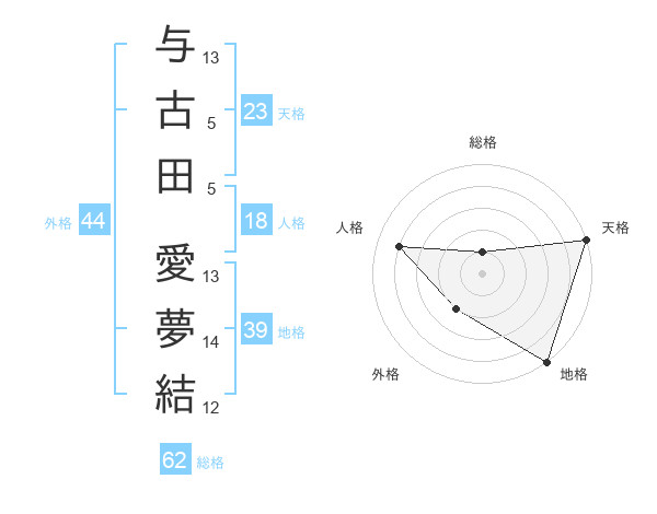 与古田 愛夢結さんの天格は23画の5点!