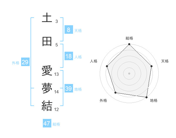 土田 愛夢結さんを姓名の画数から五運を鑑定