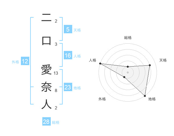 二口 愛奈人さんを姓名の画数から五運を鑑定