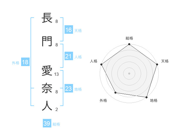 長門 愛奈人さんを姓名の画数から五運を鑑定