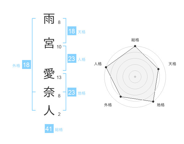 雨宮 愛奈人さんの総格は41画の5点!