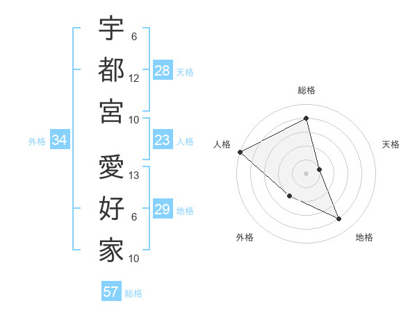 宇都宮 愛好家さんの総格は57画の4点!
