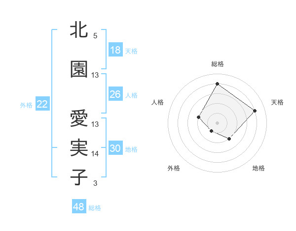 北園 愛実子さんを姓名の画数から五運を鑑定