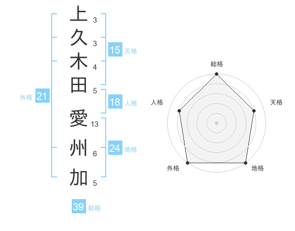 上久木田 愛州加さんの総格は39画の5点!