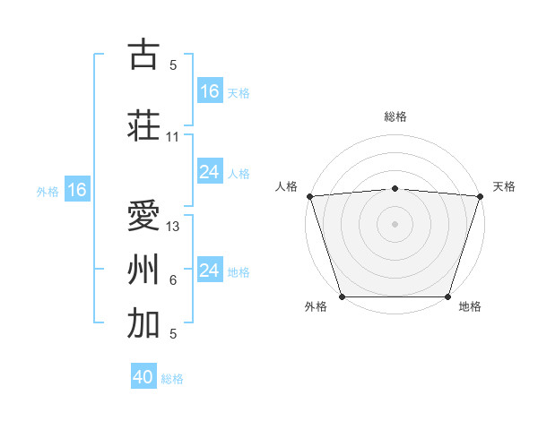 古荘 愛州加さんの外格は16画の5点!