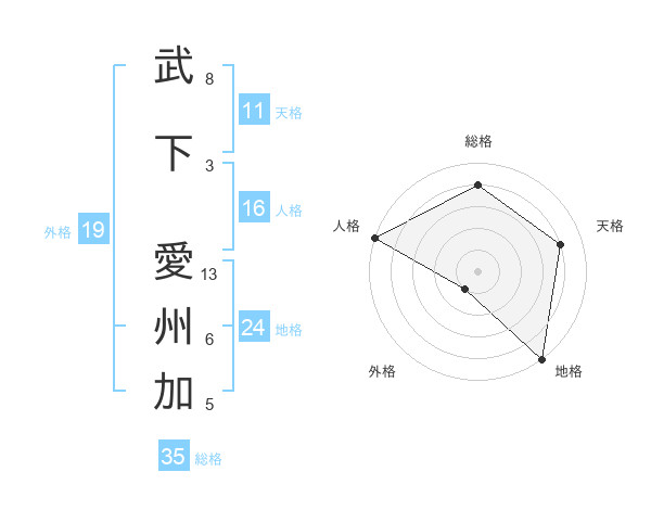 武下 愛州加さんを姓名の画数から五運を鑑定