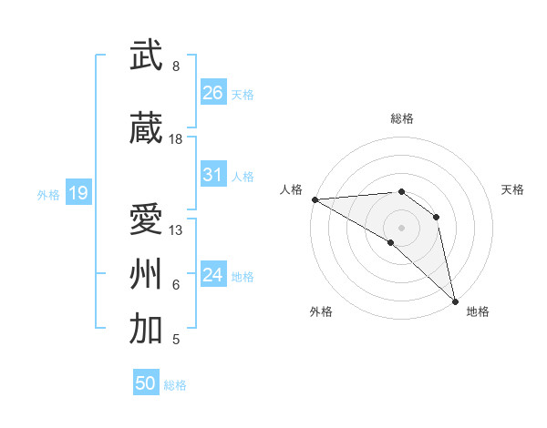 武蔵 愛州加さんの総格は50画の2点!