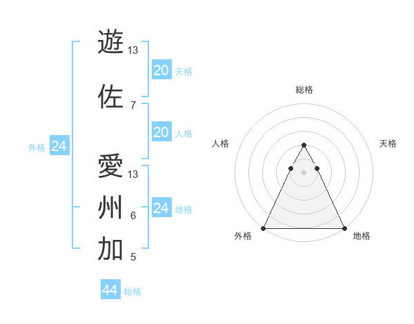 遊佐 愛州加さんの外格は24画の5点!