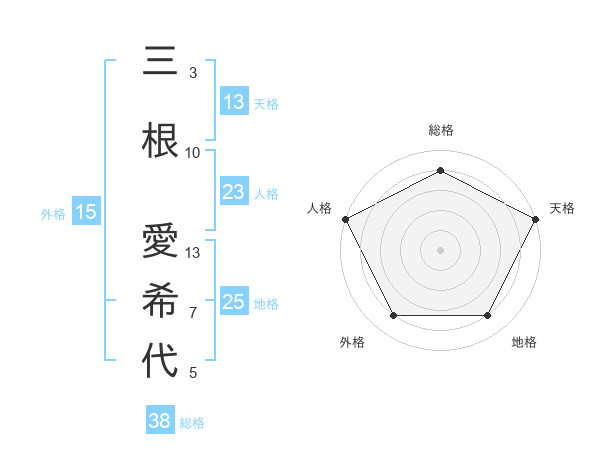 三根 愛希代さんを姓名の画数から五運を鑑定