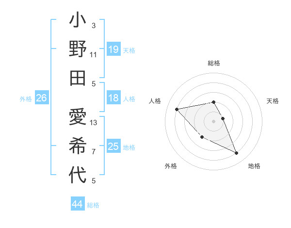 小野田 愛希代さんを姓名の画数から五運を鑑定