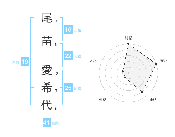 尾苗 愛希代さんを姓名の画数から五運を鑑定