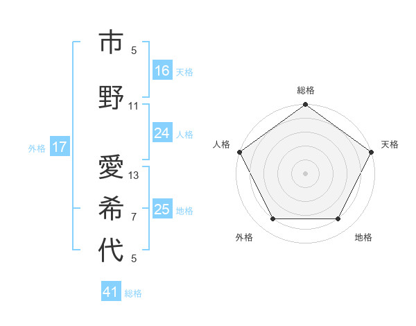 市野 愛希代さんを姓名の画数から五運を鑑定