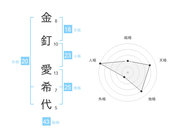 金釘 愛希代さんを姓名の画数から五運を鑑定