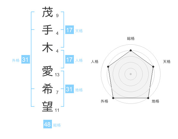 茂手木 愛希望さんを姓名の画数から五運を鑑定