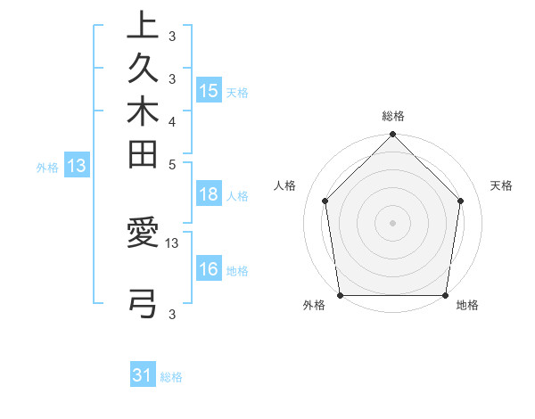 上久木田 愛弓さんを姓名の画数から五運を鑑定