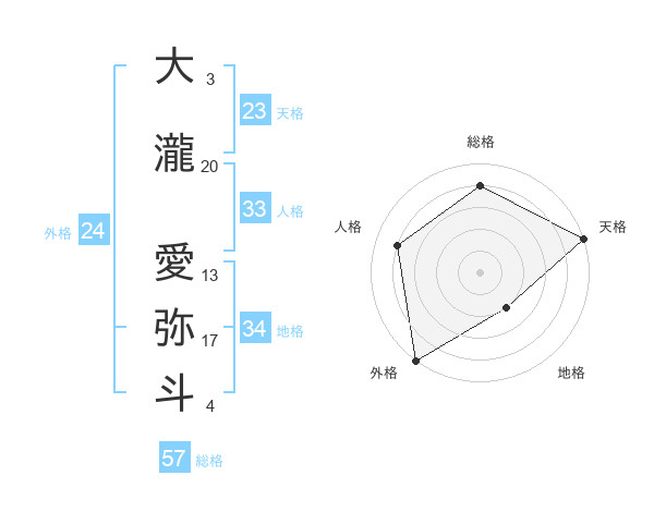大瀧 愛弥斗さんを姓名の画数から五運を鑑定