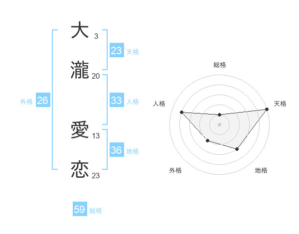 大瀧 愛恋さんの天格は23画の5点!