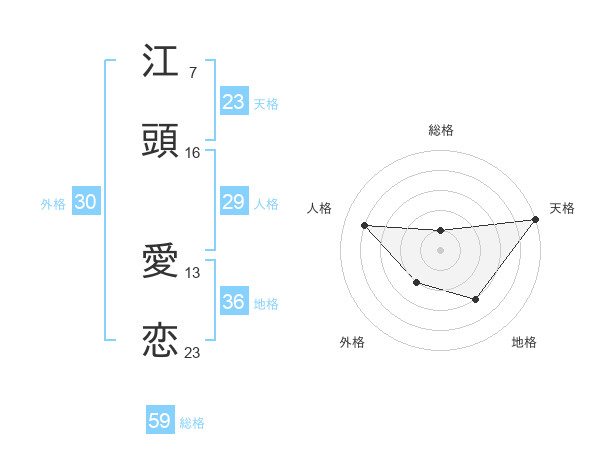 江頭 愛恋さんを姓名の画数から五運を鑑定