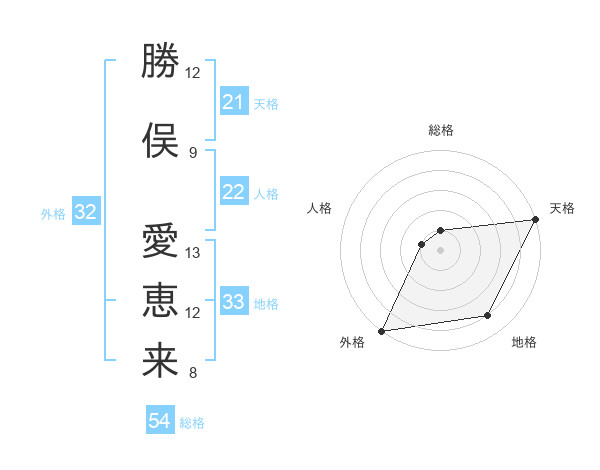 勝俣 愛恵来さんの外格は32画の5点!
