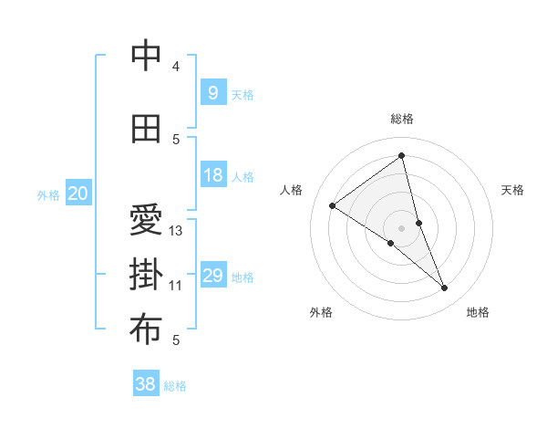 中田 愛掛布さんを姓名の画数から五運を鑑定