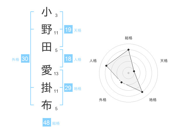 小野田 愛掛布さんを姓名の画数から五運を鑑定