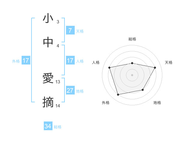 小中 愛摘さんの人格は17画の4点!