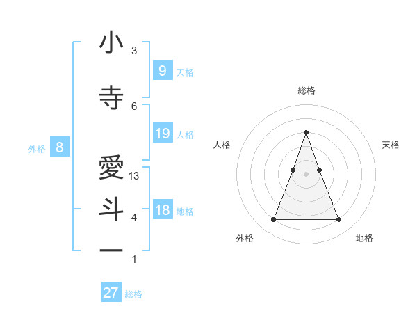 小寺 愛斗ーさんを姓名の画数から五運を鑑定